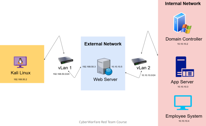 - lateral movement is basically moving from a compromised machine to another machine within the same network as the original comprimised machine. can be done through tools, service exploitation or internal phishing and legit creds/native network and OS tools if being stealthy is a concern