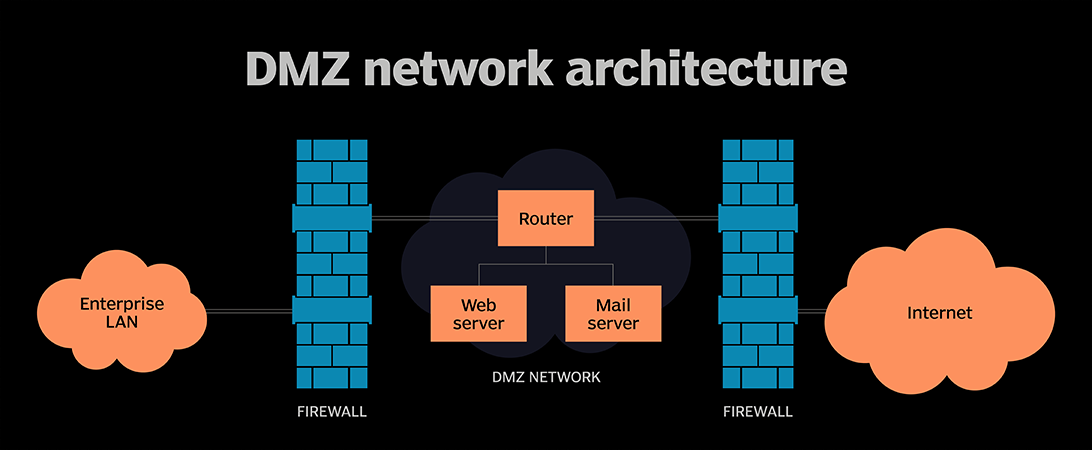 - acts as a seperate subnet to host external facing services like web or mail servers and stuff. minimizes the risk of the internal corporate lan being compromised by controlling traffic flow with firewalls