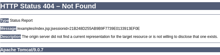 200 GET 34l 158w 1155c http://10.10.173.112:8080/docs/api/index.html401 GET 63l 289w 2473c http://10.10.173.112:8080/manager/html200 GET 351l 786w 5581c http://10.10.173.112:8080/tomcat.css302 GET 0l 0w 0c http://10.10.173.112:8080/docs => http://10.10.173.112:8080/docs/302 GET 0l 0w 0c http://10.10.173.112:8080/host-manager/ => http://10.10.173.112:8080/host-manager/html401 GET 54l 241w 2044c http://10.10.173.112:8080/host-manager/html302 GET 0l 0w 0c http://10.10.173.112:8080/manager => http://10.10.173.112:8080/manager/200 GET 18l 126w 9193c http://10.10.173.112:8080/tomcat.png302 GET 0l 0w 0c http://10.10.173.112:8080/examples => http://10.10.173.112:8080/examples/200 GET 1470l 7944w 75833c http://10.10.173.112:8080/docs/manager-howto.html200 GET 22l 93w 42556c http://10.10.173.112:8080/favicon.ico200 GET 351l 2079w 22748c http://10.10.173.112:8080/docs/deployer-howto.html302 GET 0l 0w 0c http://10.10.173.112:8080/docs/config => http://10.10.173.112:8080/docs/config/200 GET 680l 4165w 44204c http://10.10.173.112:8080/docs/cluster-howto.html200 GET 1223l 6951w 63205c http://10.10.173.112:8080/docs/realm-howto.html200 GET 0l 0w 14459c http://10.10.173.112:8080/docs/setup.html200 GET 0l 0w 35639c http://10.10.173.112:8080/docs/security-howto.html200 GET 0l 0w 6851c http://10.10.173.112:8080/docs/RELEASE-NOTES.txt200 GET 0l 0w 300136c http://10.10.173.112:8080/docs/changelog.html200 GET 202l 498w 11228c http://10.10.173.112:8080/302 GET 0l 0w 0c http://10.10.173.112:8080/docs/api => http://10.10.173.112:8080/docs/api/302 GET 0l 0w 0c http://10.10.173.112:8080/docs/appdev => http://10.10.173.112:8080/docs/appdev/200 GET 34l 158w 1155c http://10.10.173.112:8080/docs/api/302 GET 0l 0w 0c http://10.10.173.112:8080/docs/appdev/sample => http://10.10.173.112:8080/docs/appdev/sample/302 GET 0l 0w 0c http://10.10.173.112:8080/examples/servlets => http://10.10.173.112:8080/examples/servlets/404 GET 0l 0w 1091c http://10.10.173.112:8080/docs/installer404 GET 0l 0w 1084c http://10.10.173.112:8080/docs/v3302 GET 0l 0w 0c http://10.10.173.112:8080/docs/appdev/sample/docs => http://10.10.173.112:8080/docs/appdev/sample/docs/302 GET 0l 0w 0c http://10.10.173.112:8080/examples/servlets/images => http://10.10.173.112:8080/examples/servlets/images/302 GET 0l 0w 0c http://10.10.173.112:8080/docs/appdev/sample/web => http://10.10.173.112:8080/docs/appdev/sample/web/302 GET 0l 0w 0c http://10.10.173.112:8080/docs/appdev/sample/src => http://10.10.173.112:8080/docs/appdev/sample/src/200 GET 10l 19w 221c http://10.10.173.112:8080/examples/servlets/images/j_security_check302 GET 0l 0w 0c http://10.10.173.112:8080/docs/architecture/startup => http://10.10.173.112:8080/docs/architecture/startup/