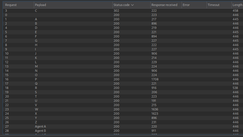 HTTP/1.1 302 FoundDate: Mon, 14 Apr 2025 10:43:58 GMTServer: Apache/2.4.29 (Ubuntu)Location: agent_C_attention.phpContent-Length: 218Keep-Alive: timeout=5, max=98Connection: Keep-AliveContent-Type: text/html; charset=UTF-8<!DocType html><html> <head> <title>Annoucement</title> </head> <body> <p> Dear agents, <br><br> Use your own <b> codename </b> as user-agent to access the site. <br><br> From,<br> Agent R </p> </body></html>