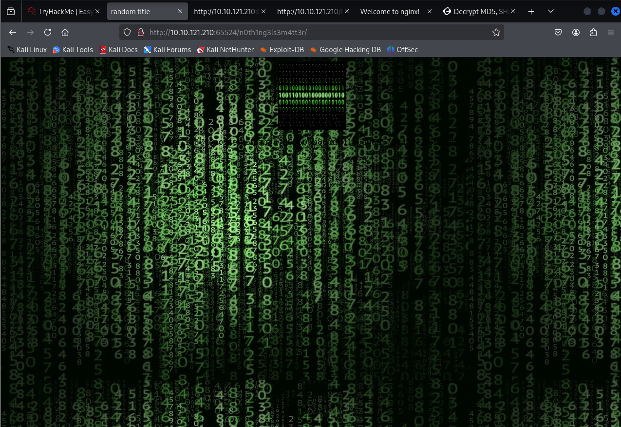 moving on. asks for the hidden directory on tryhackme. i already found it. gonna submit the nothing else matter thingy (it should be matterS not matter. the missing S bothers me so much :βD)