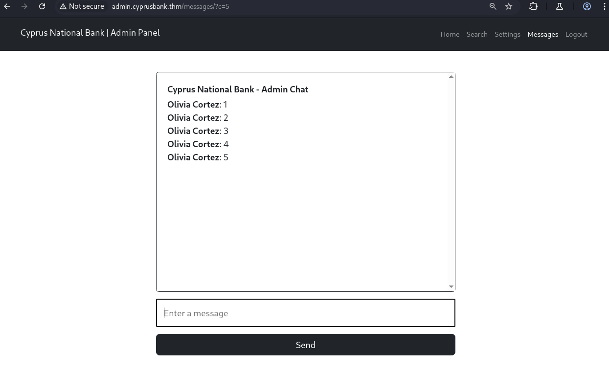http://admin.cyprusbank.thm/messages/?c=5 - lets see what happens when we change that shit