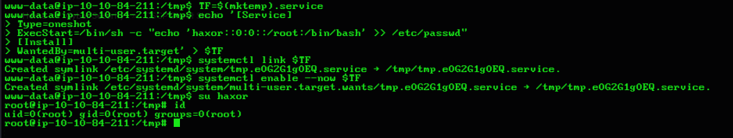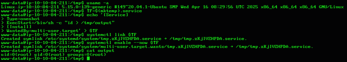 ExecStart=/bin/sh -c "id > /tmp/output"