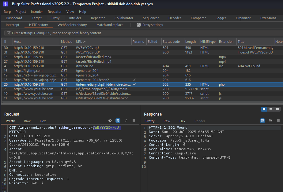 200 GET 0l 0w 402279586c http://10.10.255.98/assets/RickRolled.mp4